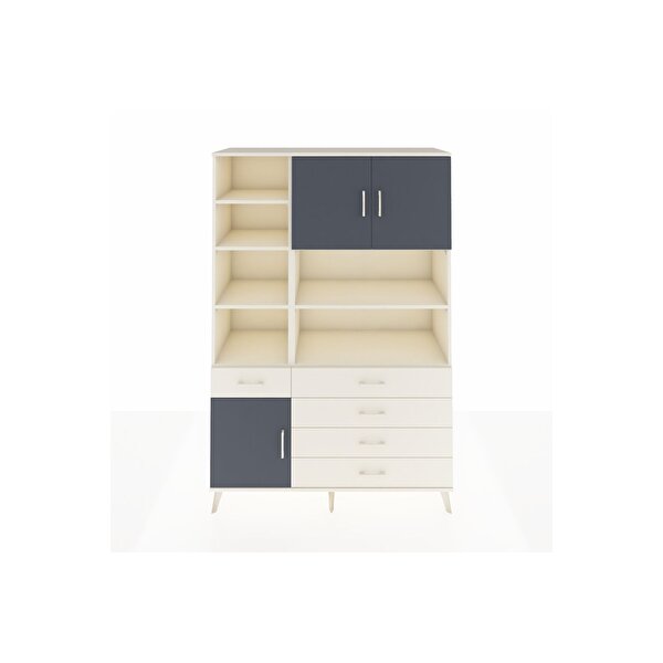 Dienni Mobilya Hyperion Dolap 9 Raflı 5 Çekmeceli 3 Kapaklı 132x44x195 Aytaşı-antrasit/aytaşı