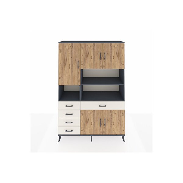Hyperion Dolap 9 Raflı 5 Çekmeceli 5 Kapaklı 132x44x195 Antrasit-Çam/Aytaşı