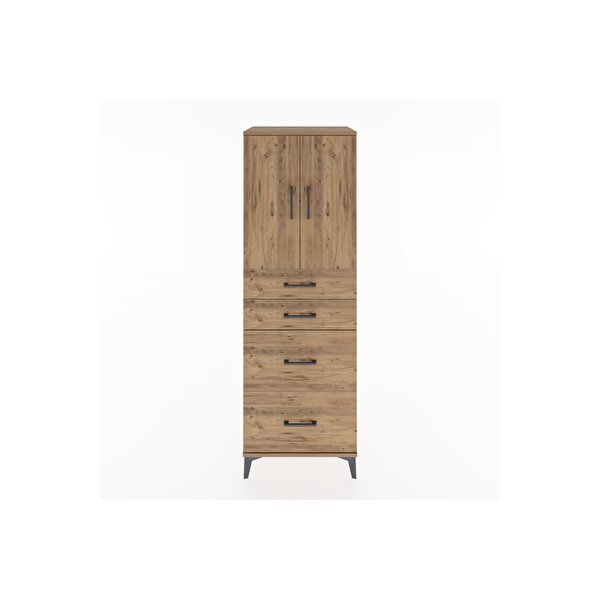 Dienni Mobilya Hyperion Dolap Tek Raflı 4 Çekmeceli 2 Kapaklı 60x44x182 Çam-çam