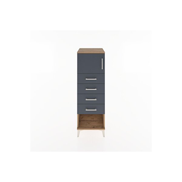 Dienni Mobilya Hyperion Dolap Tek Raflı 4 Çekmeceli Tek Kapaklı 44x44x134 Çam-antrasit