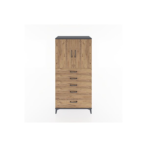 Hyperion Dolap Tek Raflı 5 Çekmeceli 2 Kapaklı 88x44x182 Antrasit-Çam