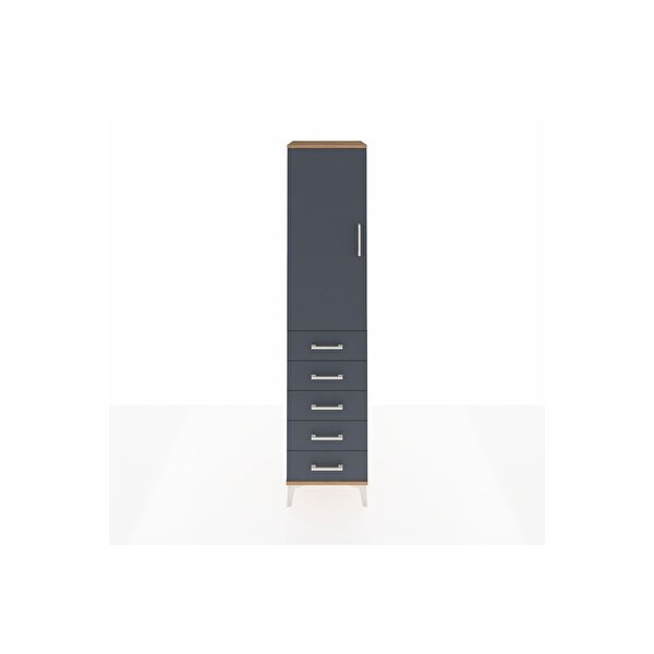 Dienni Mobilya Hyperion Dolap Tek Raflı 5 Çekmeceli Tek Askılı 44x44x195 Çam-antrasit