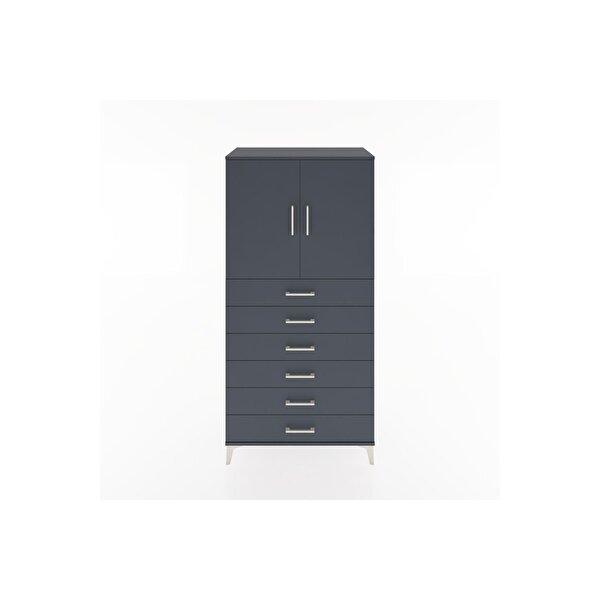 Dienni Mobilya Hyperion Dolap Tek Raflı 6 Çekmeceli 2 Kapaklı 88x44x182 Antrasit-antrasit