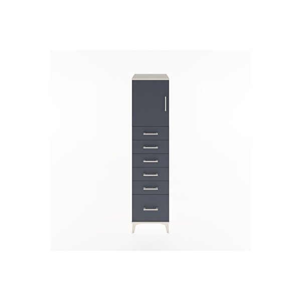 Dienni Mobilya Hyperion Dolap Tek Raflı 6 Çekmeceli Tek Kapaklı 44x44x182 Aytaşı-antrasit