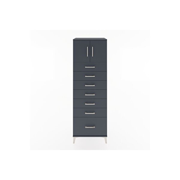 Dienni Mobilya Hyperion Dolap Tek Raflı 7 Çekmeceli 2 Kapaklı 60x44x182 Antrasit-antrasit