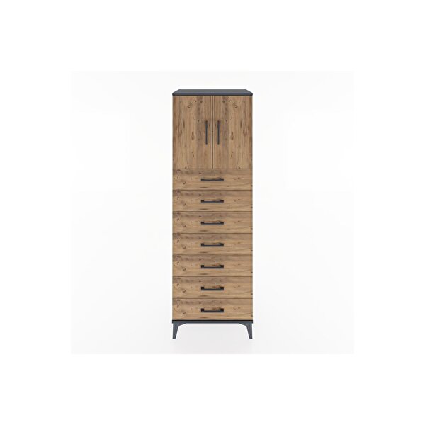 Dienni Mobilya Hyperion Dolap Tek Raflı 7 Çekmeceli 2 Kapaklı 60x44x182 Antrasit-çam