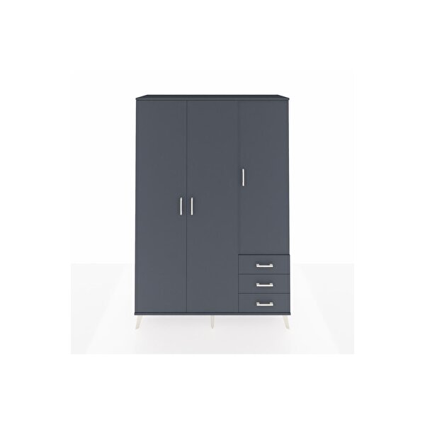 Dienni Mobilya Hyperion Gardrop 6 Raflı 3 Çekmeceli Tek Askılı 132x44x195 Antrasit-antrasit