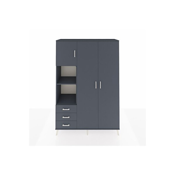 Dienni Mobilya Hyperion Gardrop 6 Raflı 3 Çekmeceli Tek Askılı 132x44x195 Antrasit-antrasit