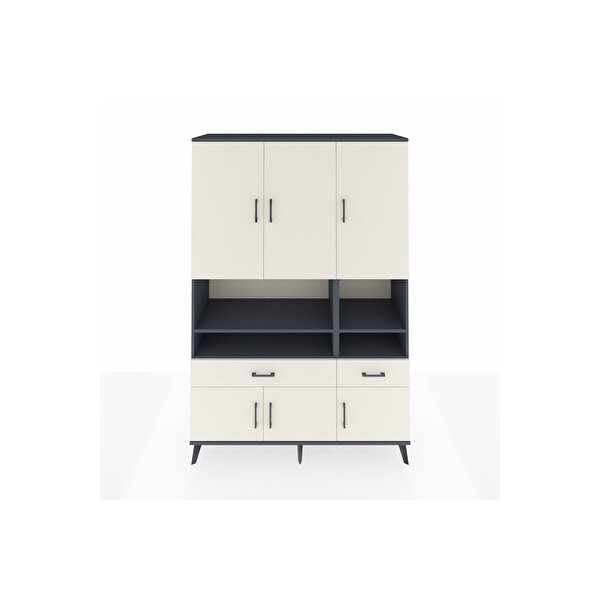 Hyperion Gardrop 8 Raflı 2 Çekmeceli 6 Kapaklı 132x44x195 Antrasit-aytaşı