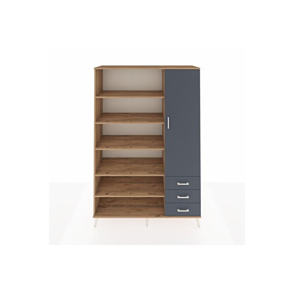 Hyperion Gardrop 9 Raflı 3 Çekmeceli Tek Kapaklı 132x44x195 Çam-Antrasit