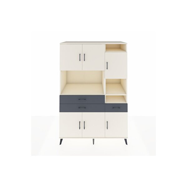 Dienni Mobilya Kronos Dolap 10 Raflı 3 Çekmeceli 6 Kapaklı 132x59x195 Aytaşı-aytaşı/antrasit