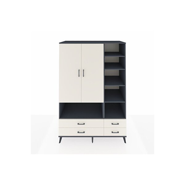 Dienni Mobilya Kronos Dolap 10 Raflı 4 Çekmeceli 2 Kapaklı 132x59x195 Antrasit-aytaşı/aytaşı
