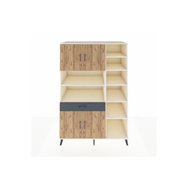 Dienni Mobilya Kronos Dolap 10 Raflı Tek Çekmeceli 4 Kapaklı 132x59x195 Aytaşı-çam/antrasit