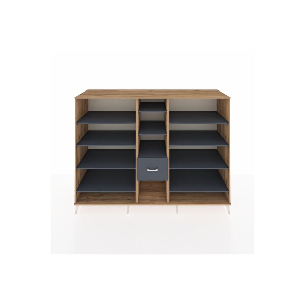 Dienni Mobilya Kronos Dolap 11 Raflı 3 Çekmeceli 220x59x163 Çam-antrasit