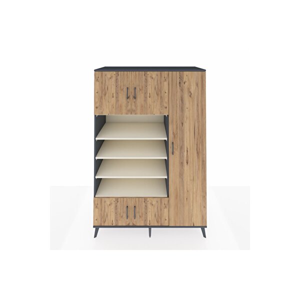 Dienni Mobilya Kronos Dolap 11 Raflı 5 Kapaklı 132x59x195 Antrasit-çam/aytaşı