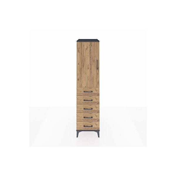 Dienni Mobilya Kronos Dolap 2 Raflı 5 Çekmeceli Tek Kapaklı 44x59x182 Antrasit-çam