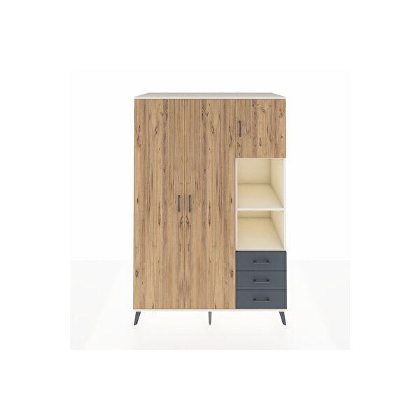 Dienni Mobilya Kronos Dolap 5 Raflı 3 Çekmeceli Tek Askılı 132x59x195 Aytaşı-çam/antrasit