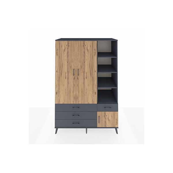 Dienni Mobilya Kronos Dolap 5 Raflı 4 Çekmeceli Tek Askılı 132x59x195 Antrasit-çam/antrasit