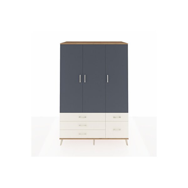 Dienni Mobilya Kronos Dolap 5 Raflı 5 Çekmeceli Tek Askılı 132x59x195 Çam-antrasit/aytaşı