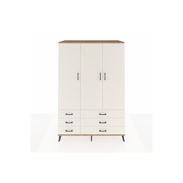 Dienni Mobilya Kronos Dolap 5 Raflı 6 Çekmeceli Tek Askılı 132x59x195 Çam-aytaşı/aytaşı