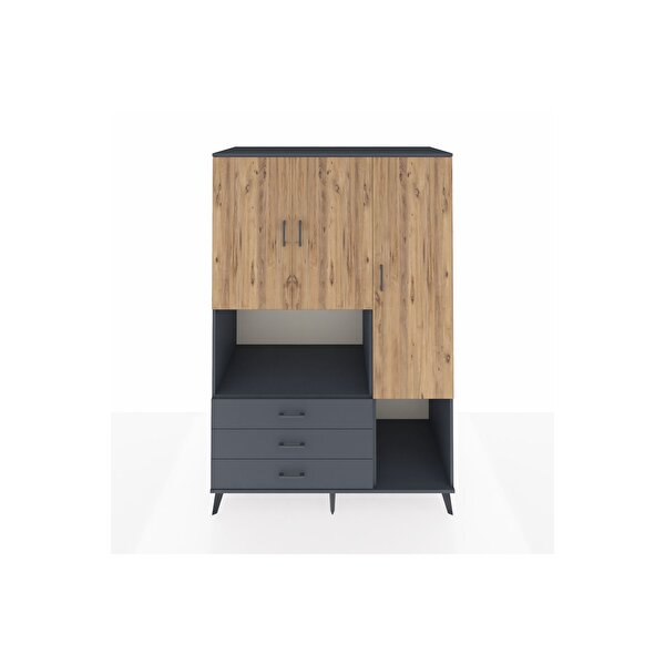 Dienni Mobilya Kronos Dolap 6 Raflı 3 Çekmeceli 3 Kapaklı 132x59x195 Antrasit-çam/antrasit