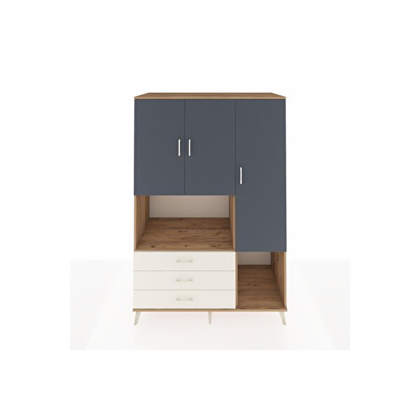 Dienni Mobilya Kronos Dolap 6 Raflı 3 Çekmeceli 3 Kapaklı 132x59x195 Çam-antrasit/aytaşı