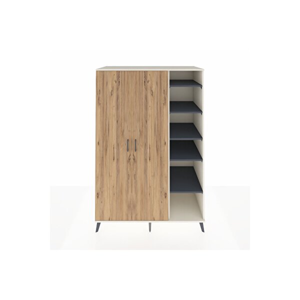 Dienni Mobilya Kronos Dolap 7 Raflı 2 Kapaklı Tek Askılı 132x59x195 Aytaşı-çam/antrasit