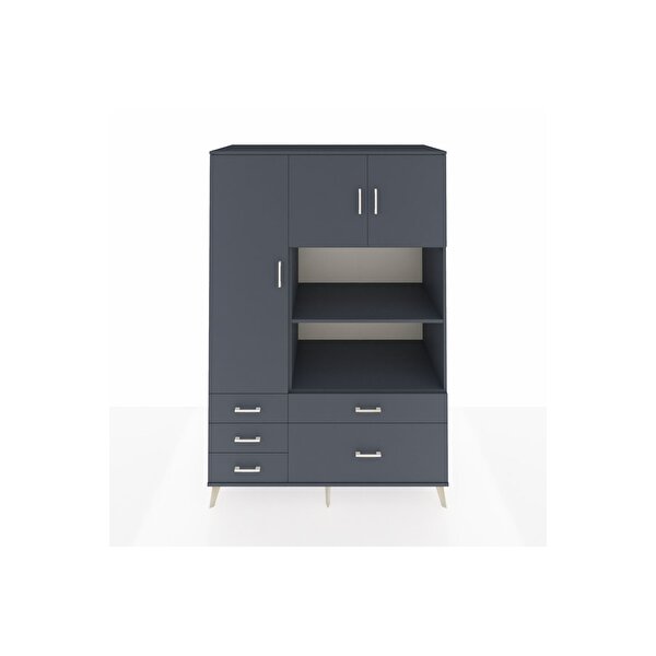 Dienni Mobilya Kronos Dolap 7 Raflı 5 Çekmeceli 3 Kapaklı 132x59x195 Antrasit-antrasit/antrasit