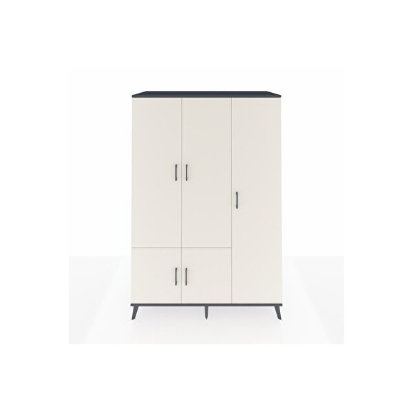 Dienni Mobilya Kronos Dolap 7 Raflı 5 Kapaklı Tek Askılı 132x59x195 Antrasit-aytaşı/çam