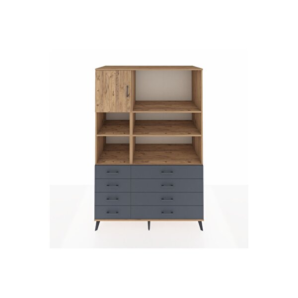 Dienni Mobilya Kronos Dolap 7 Raflı 8 Çekmeceli Tek Kapaklı 132x59x195 Çam-çam/antrasit