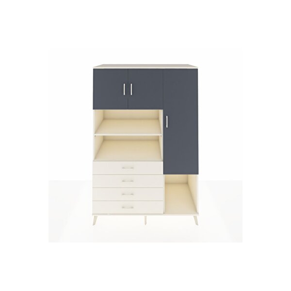 Dienni Mobilya Kronos Dolap 8 Raflı 4 Çekmeceli 3 Kapaklı 132x59x195 Aytaşı-antrasit/aytaşı