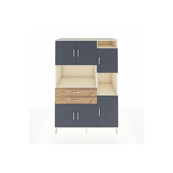 Kronos Dolap 9 Raflı 2 Çekmeceli 6 Kapaklı 132x59x195 Aytaşı-antrasit/çam
