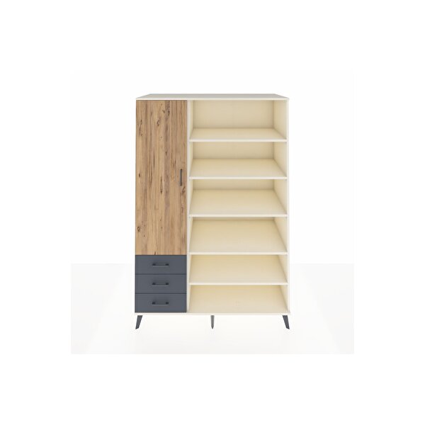 Dienni Mobilya Kronos Dolap 9 Raflı 3 Çekmeceli 3 Kapaklı 132x59x195 Aytaşı-çam/antrasit