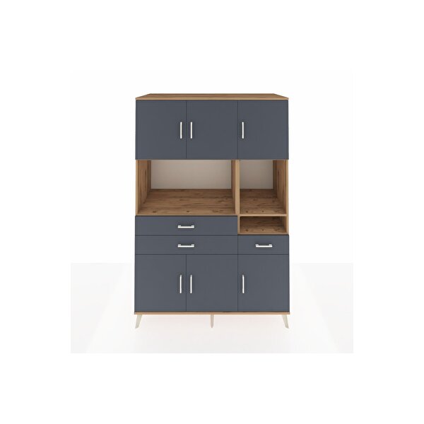 Dienni Mobilya Kronos Dolap 9 Raflı 3 Çekmeceli 6 Kapaklı 132x59x195 Çam-antrasit/antrasit