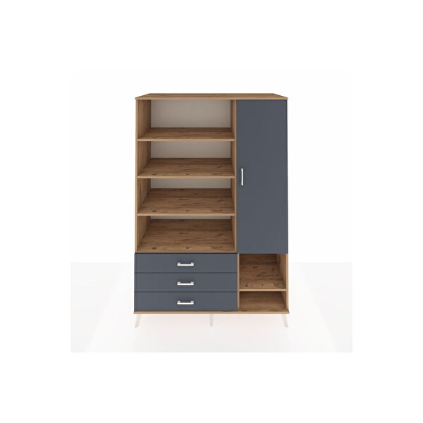 Dienni Mobilya Kronos Dolap 9 Raflı 3 Çekmeceli Tek Kapaklı 132x59x195 Çam-antrasit/antrasit