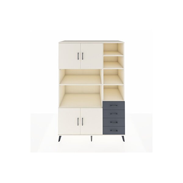 Dienni Mobilya Kronos Dolap 9 Raflı 4 Çekmeceli 4 Kapaklı 132x59x195 Aytaşı-aytaşı/antrasit