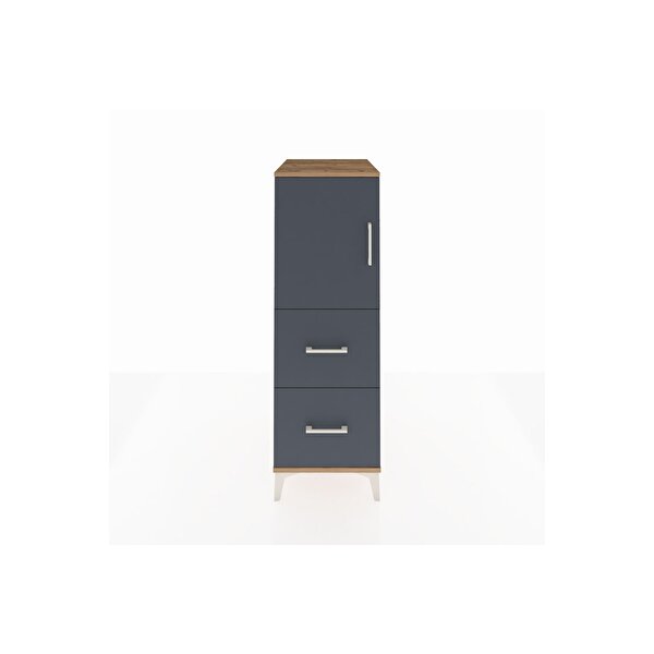 Dienni Mobilya Kronos Dolap Tek Raflı 2 Çekmeceli Tek Kapaklı 44x59x134 Çam-antrasit
