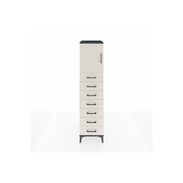 Dienni Mobilya Kronos Dolap Tek Raflı 7 Çekmeceli Tek Kapaklı 44x59x182 Antrasit-aytaşı
