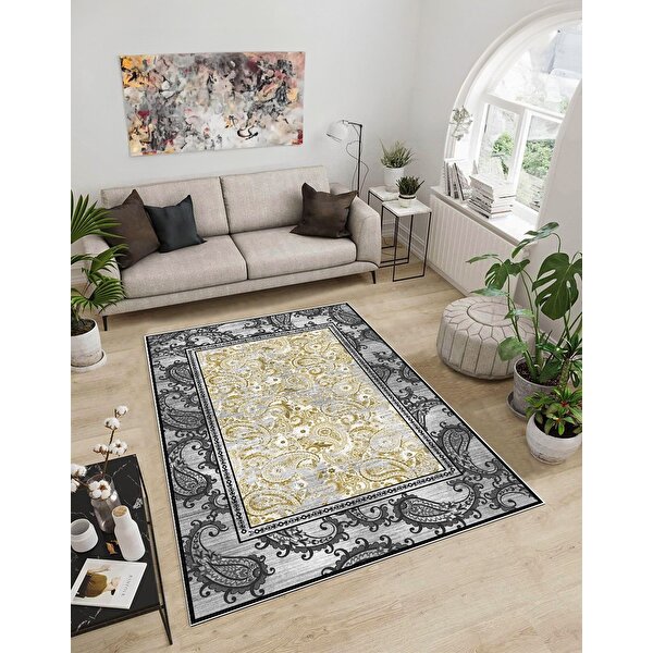 Modern tasarımıyla evinizin dekorasyonuna şıklık katan özel tasarımlı salon halısı, mutfak gibi yoğun kullanılan alanlarda estetik bir görünüm sağlar; - Yüksek kaliteli polyester materyali sayesinde uzun ömürlü kullanım sunar ve kolay temizlenebilir özelliğiyle pratik bir bakım imkanı tanır; - Antibakteriyel yapısı ile hijyenik bir ortam yaratır, bakteri ve mikropların yayılmasını önler; - Özel deseniyle modern ve dinamik bir atmosfer oluştururken, mekanınıza farklı bir dokunuş ekler; - 6 mm kalınlıkta olup, konforlu bir yürüyüş deneyimi sunarken, dayanıklılığından ödün vermez; - Dikdörtgen kesimi sayesinde çeşitli oda düzenlerine kolayca uyum sağlar ve mekana yumuşak bir geçiş sağlar; - Dot taban yapısı kaymayı önleyerek güvenli bir kullanım sunarken, zeminle mükemmel uyum içinde durur; - Dijital baskı teknolojisi ile üretilen canlı ve net desenler, uzun süre solma yapmadan ilk günkü gibi kalır.; - Sa;