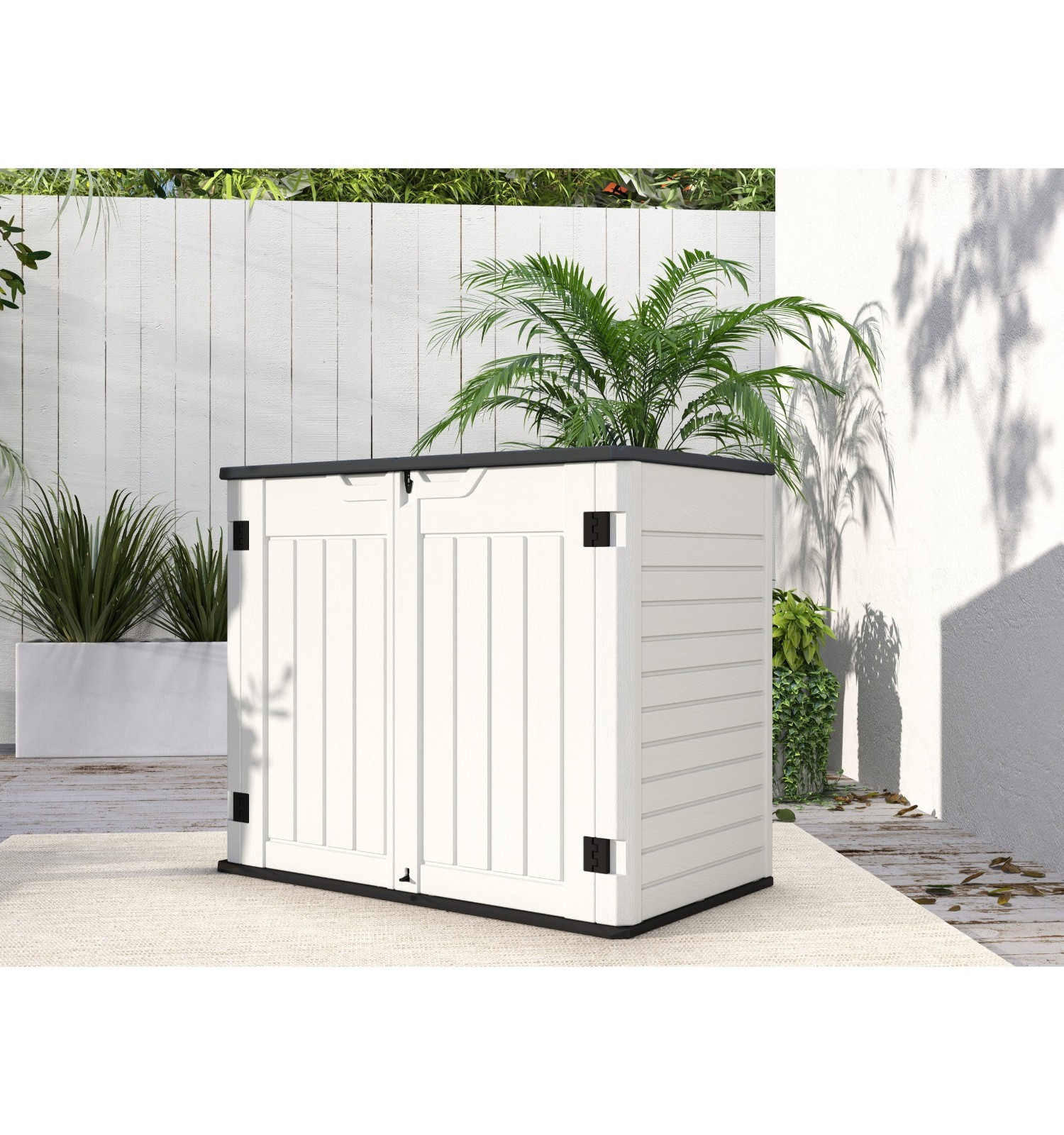 Entegre kilitlenebilir tasarımı, depolanan eşyaların yetkisiz erişime karşı korunmasını sağlar. Bahçe ve açık alanlarda ekstra güvenlik sunarak değerli eşyalarınızı gönül rahatlığıyla saklamanıza imkân tanır.