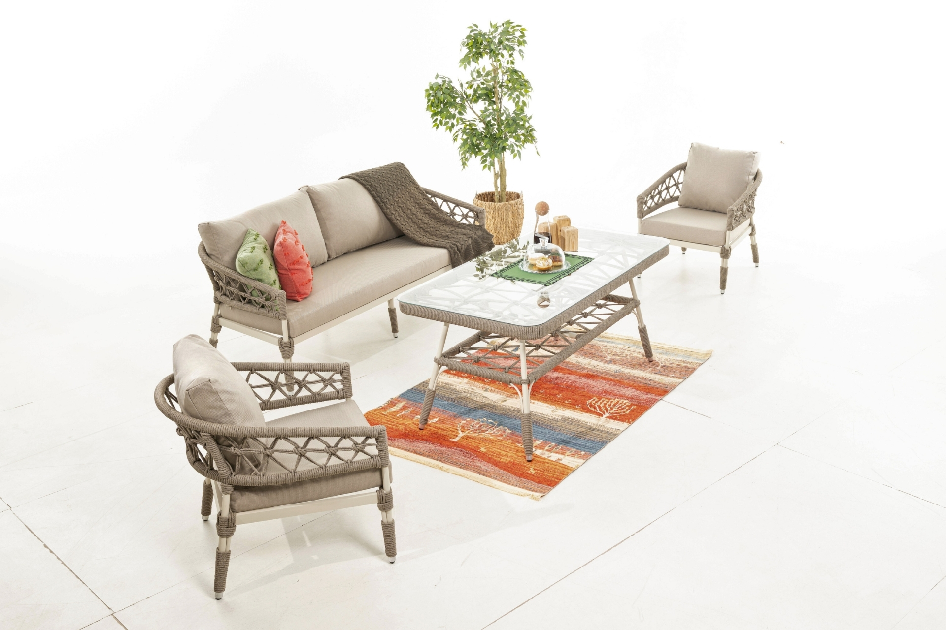 Divona Home Rope Bahçe Balkon Takimi 3+1+1+masa