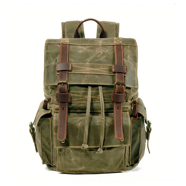 Model: 9504-darkgreensuya Dayanıklı Mumlu Kanvas Kumaş Ile Dana Derisi Detayların Çarpıcı Uyumu