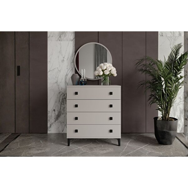 Malzeme: Yüksek mukavemet özelliğine sahip MDF Şifonyer Fonksiyonu: Çekmeceli / Aynalı Ayak Tipi: Ahşap Ürün demonte olarak gönderilir ve kurulum müşteriye aittir. Müşteri tercihine göre ürün kurulumu tarafımızca gerçekleştirilebilir. Teslimat: Tüm ürünler titizlikle hazırlanmakta ve anlaşmalı lojistik firmalarıyla gönderilmektedir. Türkiye’nin her yerine teslimat yapılmaktadır. Garanti: 2 Yıl Şifonyer: (G: 80 D: 45 Y: 90) Şifonyer Aynası: (G: 81 D: 4 Y: 80)