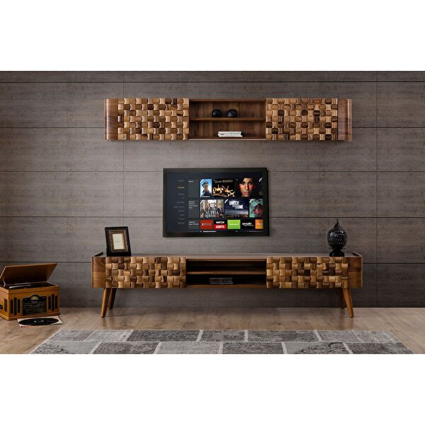 Malzeme: Yüksek mukavemet özelliğine sahip MDF Fonksiyonu: Kapaklı / Raflı Ayak Tipi: Ahşap Ürün demonte olarak gönderilir ve kurulum müşteriye aittir. Müşteri tercihine göre ürün kurulumu tarafımızca gerçekleştirilebilir. Teslimat: Tüm ürünler titizlikle hazırlanmakta ve anlaşmalı lojistik firmalarıyla gönderilmektedir. Türkiye’nin her yerine teslimat yapılmaktadır. Garanti: 2 Yıl Tv Ünitesi: Alt Blok: (G: 222 D: 47 Y: 50) Üst Blok: (G: 212 D: 18 Y: 35)