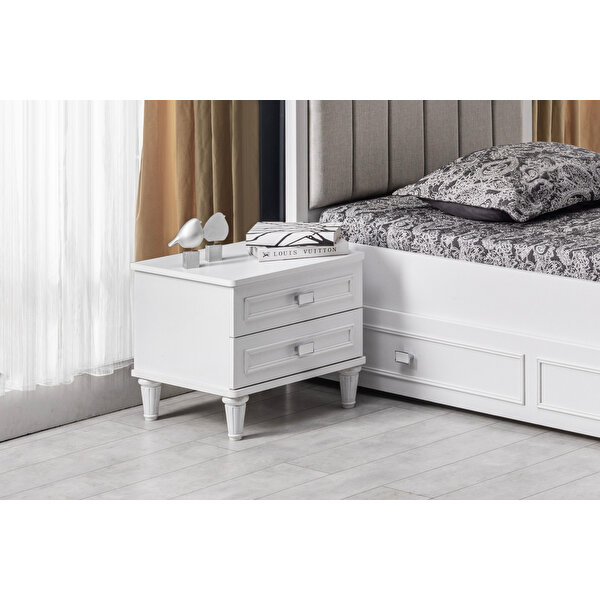 Malzeme: Avrupa E1 Standartlarına uygun malzeme olan Yonga Levha Komodin Fonksiyonu: Çift Çekmeceli Komodin Ayak Tipi: Mika Ürün demonte olarak gönderilir ve kurulum müşteriye aittir. Müşteri tercihine göre ürün kurulumu tarafımızca gerçekleştirilebilir. Teslimat: Tüm ürünler titizlikle hazırlanmakta ve anlaşmalı lojistik firmalarıyla gönderilmektedir. Türkiye’nin her yerine ücretsiz teslimat yapılmaktadır. Garanti: 2 Yıl Komodin: (G: 52 D: 46 Y: 47)