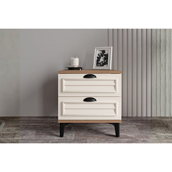 Malzeme: Yüksek mukavemet özelliğine sahip MDF Komodin Fonksiyonu: Çift Çekmeceli Ayak Tipi: Ahşap Ürün demonte olarak gönderilir ve kurulum müşteriye aittir. Müşteri tercihine göre ürün kurulumu tarafımızca gerçekleştirilebilir. Teslimat: Tüm ürünler titizlikle hazırlanmakta ve anlaşmalı lojistik firmalarıyla gönderilmektedir. Türkiye’nin her yerine teslimat yapılmaktadır. Garanti: 2 Yıl Komodin: (G: 50 D: 45 Y: 53)