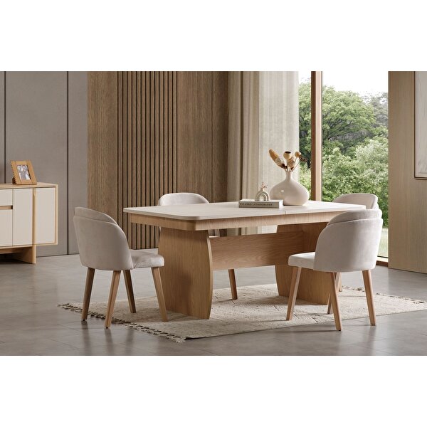 Takım İçeriği: Masa-6 Sandalye Malzeme: Avrupa E1 Standartlarına uygun malzeme olan Yonga Levha Masa Fonksiyonu: Açılır Ayak Tipi: Ahşap Ürün demonte olarak gönderilir ve kurulum müşteriye aittir. Müşteri tercihine göre ürün kurulumu tarafımızca gerçekleştirilebilir. Teslimat: Tüm ürünler titizlikle hazırlanmakta ve anlaşmalı lojistik firmalarıyla gönderilmektedir. Türkiye’nin her yerine teslimat yapılmaktadır. Garanti: 2 Yıl Masa: Kapalı (G: 165 D: 90 Y: 78) Açık (G: 205 D: 90 Y: 78) Sandalye: (G: 55 D: 50 Y: 84)