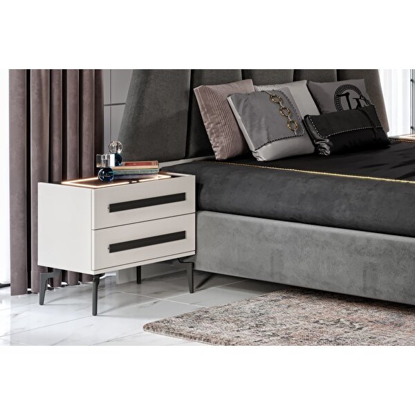 Malzeme: Yüksek mukavemet özelliğine sahip MDF Komodin Fonksiyonu: Çift Çekmeceli Ayak Tipi: Mika Ürün demonte olarak gönderilir ve kurulum müşteriye aittir. Müşteri tercihine göre ürün kurulumu tarafımızca gerçekleştirilebilir. Teslimat: Tüm ürünler titizlikle hazırlanmakta ve anlaşmalı lojistik firmalarıyla gönderilmektedir. Türkiye’nin her yerine teslimat yapılmaktadır. Garanti: 2 Yıl Komodin: (G: 60 D: 42 Y: 60)