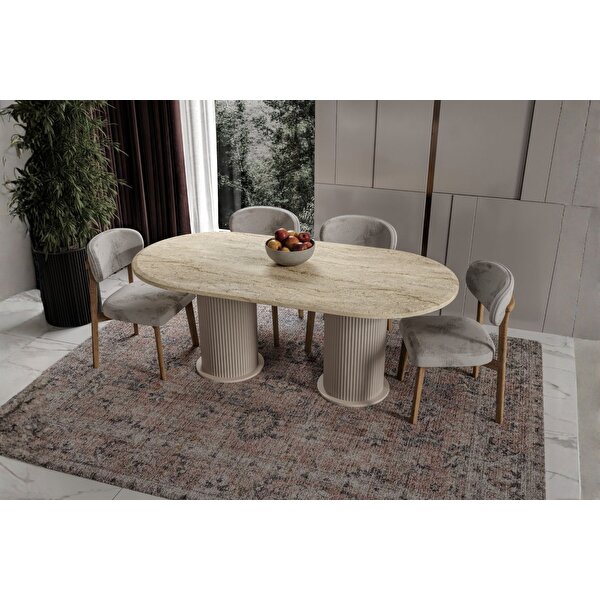 Takım İçeriği: Masa-6 Sandalye Malzeme: Yüksek mukavemet özelliğine sahip MDF Masa Fonksiyonu: Sabit Ayak Tipi: Ahşap Ürün demonte olarak gönderilir ve kurulum müşteriye aittir. Müşteri tercihine göre ürün kurulumu tarafımızca gerçekleştirilebilir. Teslimat: Tüm ürünler titizlikle hazırlanmakta ve anlaşmalı lojistik firmalarıyla gönderilmektedir. Türkiye'nin her yerine teslimat yapılmaktadır. Garanti: 2 Yıl Masa: (G: 160 D: 75 Y: 90) Sandalye: (G:55 D: 50 Y: 84)