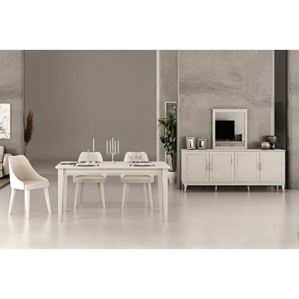 Takım İçeriği: Masa- 6 Sandalye -Konsol- Konsol Aynası Malzeme: Avrupa E1 Standartlarına uygun malzeme olan Yonga Levha Masa Fonksiyonu: Açılır Konsol Fonksiyonu: Kapaklı / Aynalı Ayak Tipi: Mika Ürün demonte olarak gönderilir ve kurulum müşteriye aittir. Müşteri tercihine göre ürün kurulumu tarafımızca gerçekleştirilebilir. Teslimat: Tüm ürünler titizlikle hazırlanmakta ve anlaşmalı lojistik firmalarıyla gönderilmektedir. Türkiye’nin her yerine teslimat yapılmaktadır. Garanti: 2 Yıl Masa: Kapalı (G: 160 D: 90 Y: 76) Açık (G: 200 D: 90 Y: 76) Sandalye: (G: 52 D: 54 Y: 92) Konsol: (G: 220 D: 45 Y: 164)